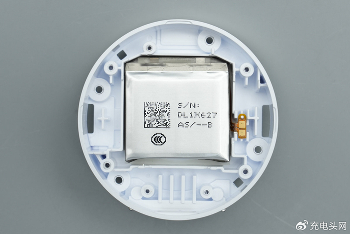 拆掉螺丝取出PCB板,内置电芯通过排线与PCB板接触连通。