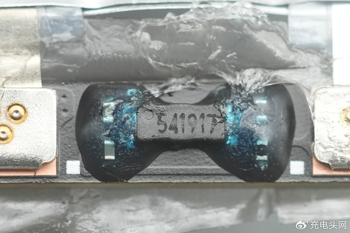 一体化电池保护芯片丝印541917,两侧打胶水处理。