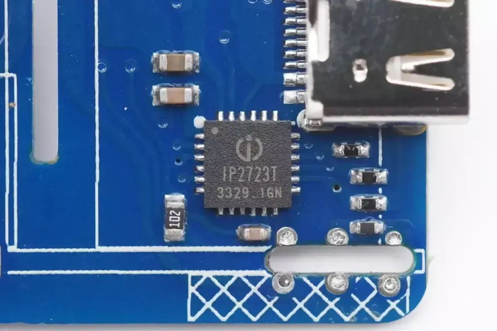 协议芯片采用英集芯IP2723T,该芯片已通过USB IF协会PD3.0 PPS认证,TID:3135,是一款集成多种协议、用于USB输出端口的快充协议IC。