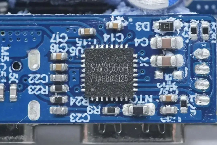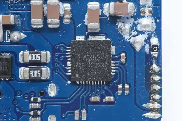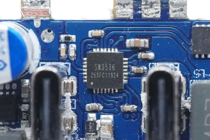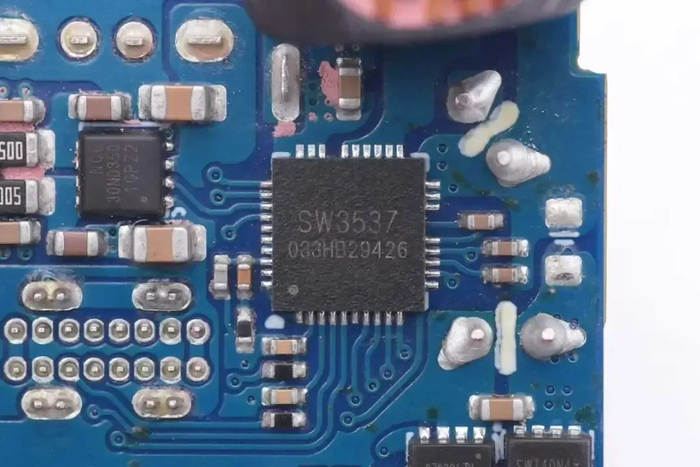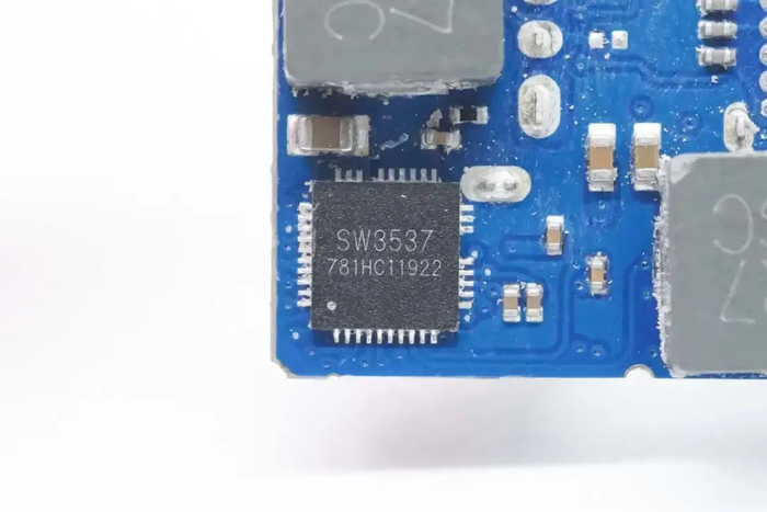 用于USB-C2和USB-A口的降压芯片采用智融科技SW3537,芯片内部集成5A高效率同步整流降压转换器,支持多种主流充电协议。