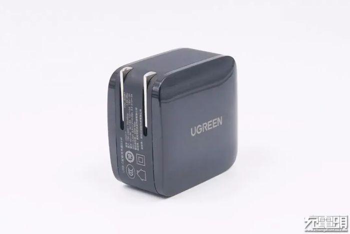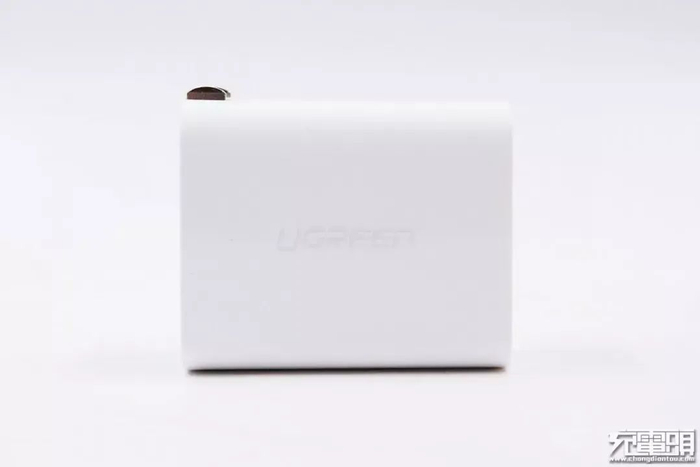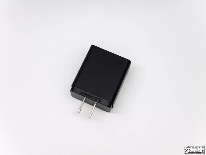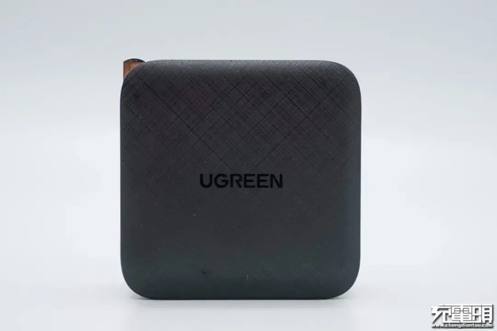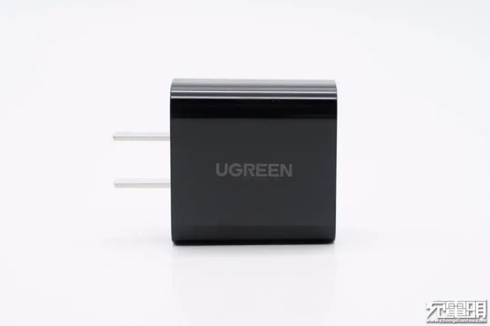 这款充电器采用黑色外观,外壳为ABS+PC材质,表面磨砂处理,外观方方正正,AC插头处有绿联LOGO。