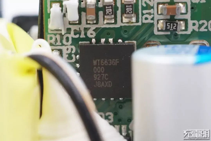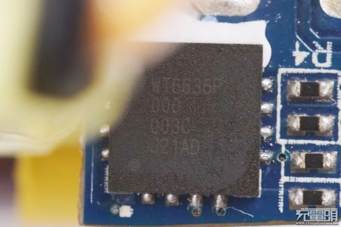 USB PD协议芯片来自伟诠,型号WT6636F。在充电头网了解到,伟诠WT6636F是一颗通过USB-IF协会USB PD3.0(PPS)认证的协议芯片(TID号:1080018)。