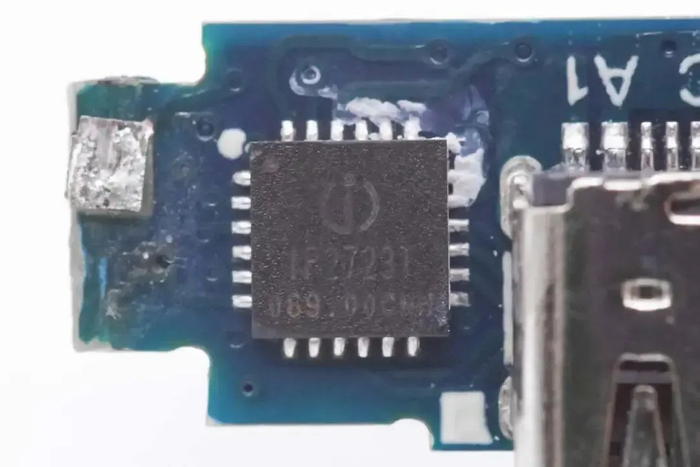 USB-C口协议芯片采用英集芯IP2723T,该芯片已通过USB IF协会PD3.0 PPS认证,TID:3135,是一款集成多种协议、用于USB输出端口的快充协议IC。