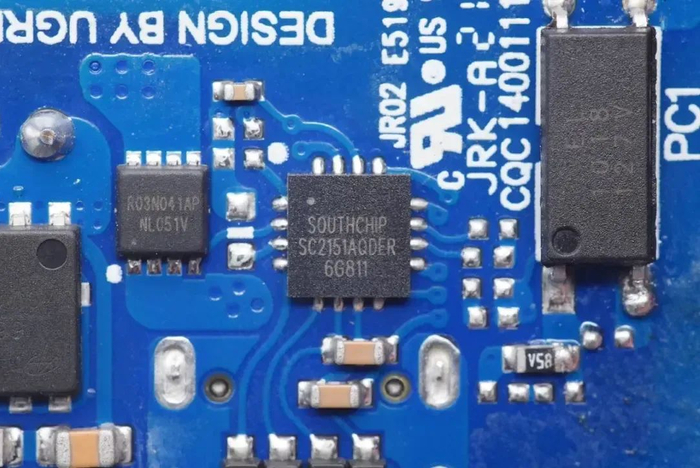 协议芯片采用南芯科技SC2151A,该芯片已经获得USB-IF PD3.0认证,TID:4869。其采用16-pin QFN 4*4mm封装,是一颗支持PD和DP/DM快充协议的控制器。