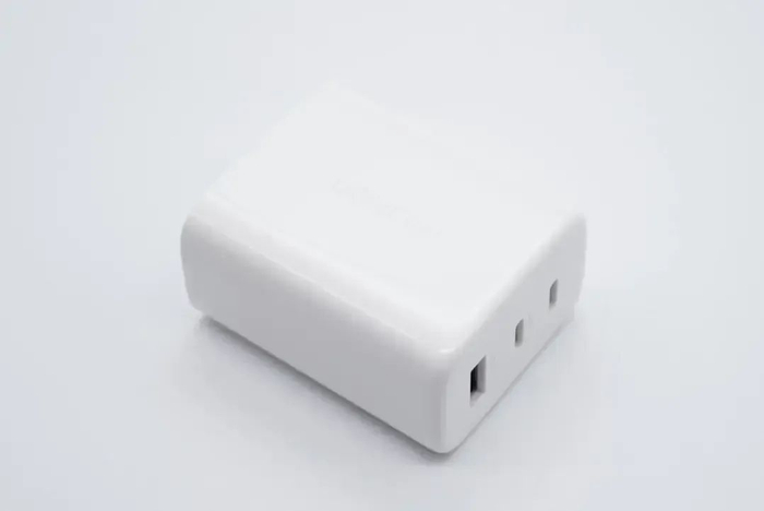 绿联这款65W氮化镓充电器采用长条柱状造型设计,并配有折叠插脚,小巧便携。充电器配有两个USB-C接口和一个USB-A接口。其中两个USB-C接口均支持65W快充,满足笔记本电脑和手机充电,USB-A口支持22.5W快充,并且支持功率自动分配,功能十分实用。