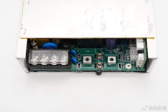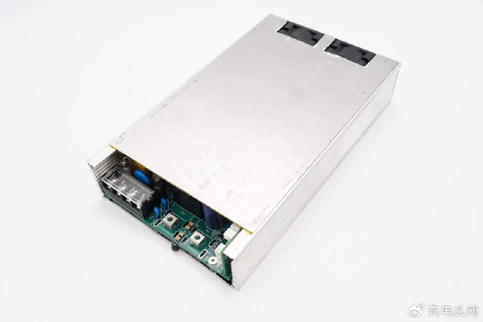 港晟这款DEMO为规整长方体造型设计,外部使用一体外壳辅助散热,内侧设有麦拉片进行隔离绝缘,并通过螺丝固定。