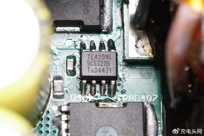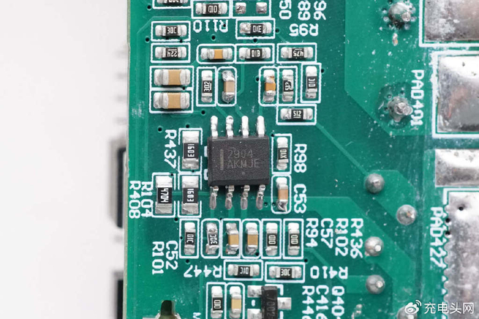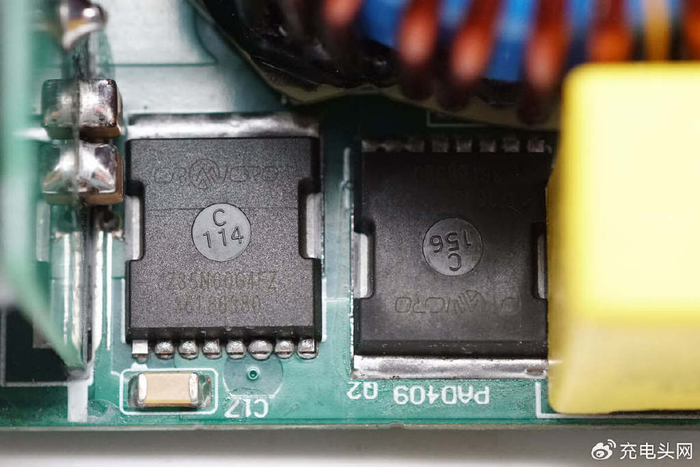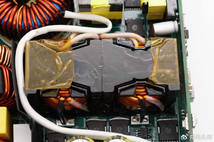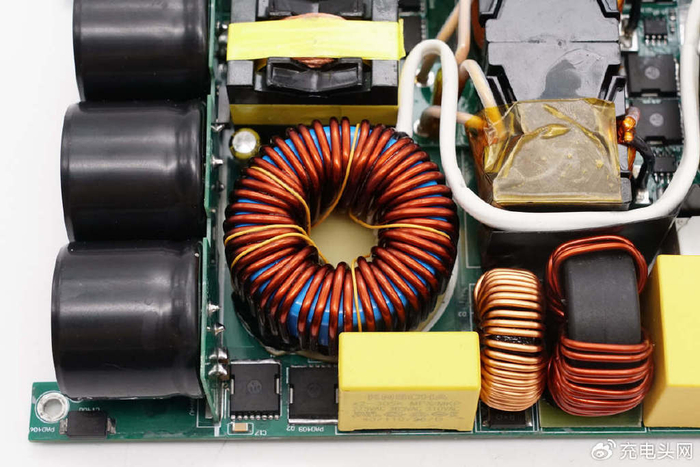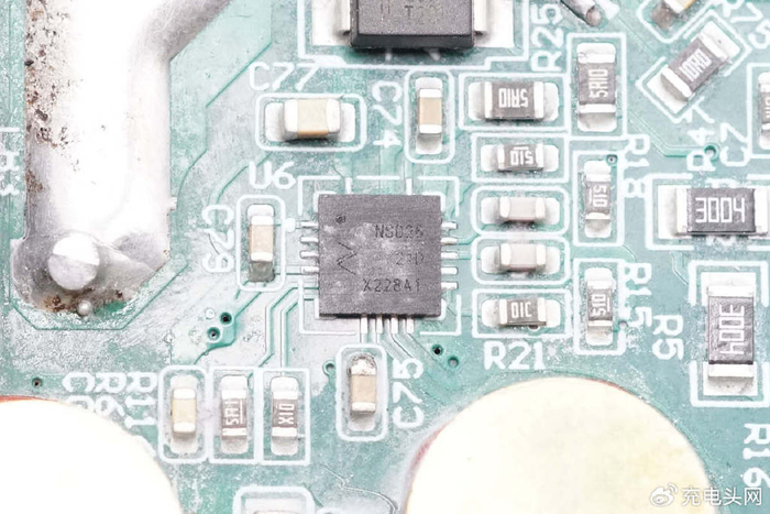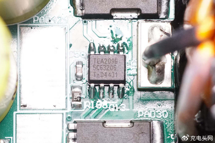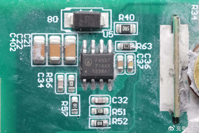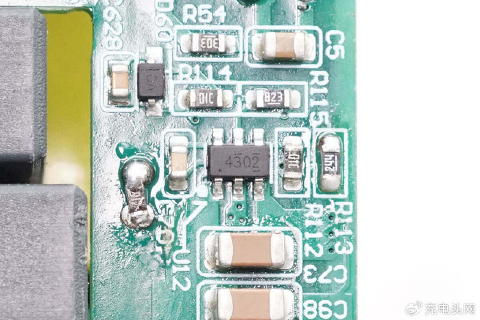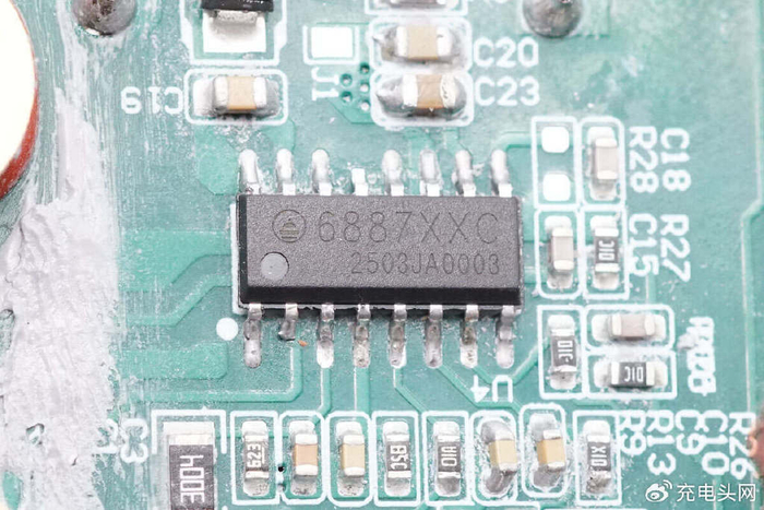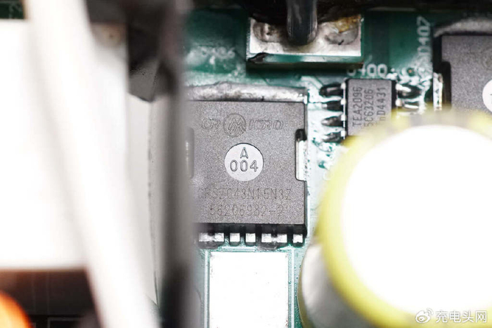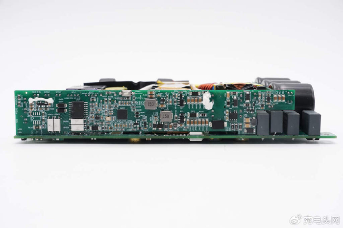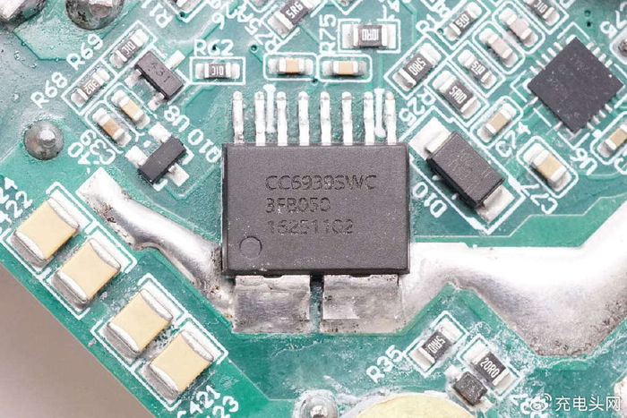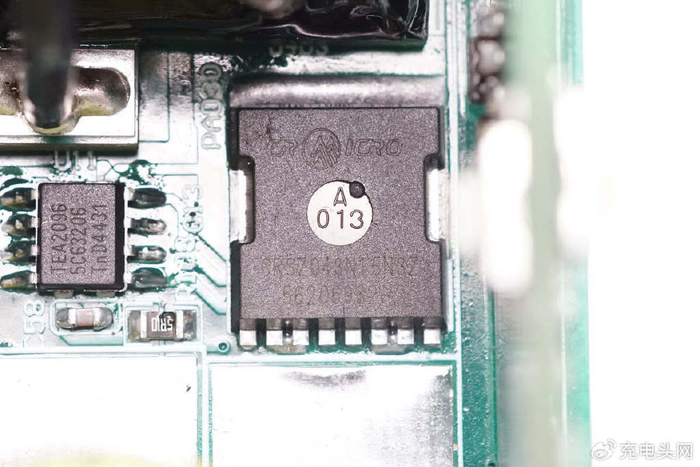 充电头网拆解发现,该方案核心控制器件采用了梵塔图腾柱 PFC 控制器 FAN6618、LLC 控制器 FAN6887 及恩智浦次级同步整流控制器 TEA2096;电流检测则选用了芯进霍尔元件 CC6922SG-3FB050。相较于市面上其他图腾柱拓扑方案,本设计线路结构更为简洁,BOM 成本更低。