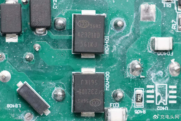两颗贴片式压敏电阻来自钜兴,型号4232-252 V561。