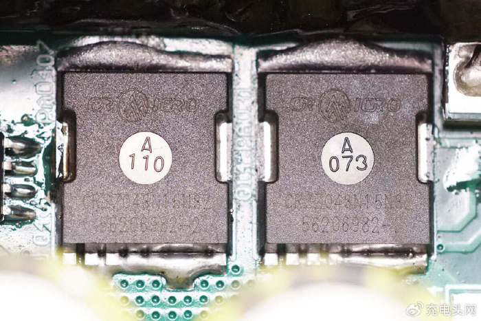 在PFC升压电感下焊接两颗图腾柱慢管,来自华润微,型号CRJZ35N60G4FZ,采用TOLL封装。