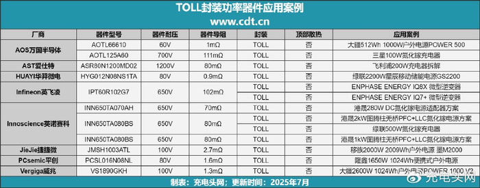 充电头网整理了采用TOLL功率器件的产品或demo方案,同时为便于读者朋友查阅,我们将文中出现的TOLL参数汇总至上表。