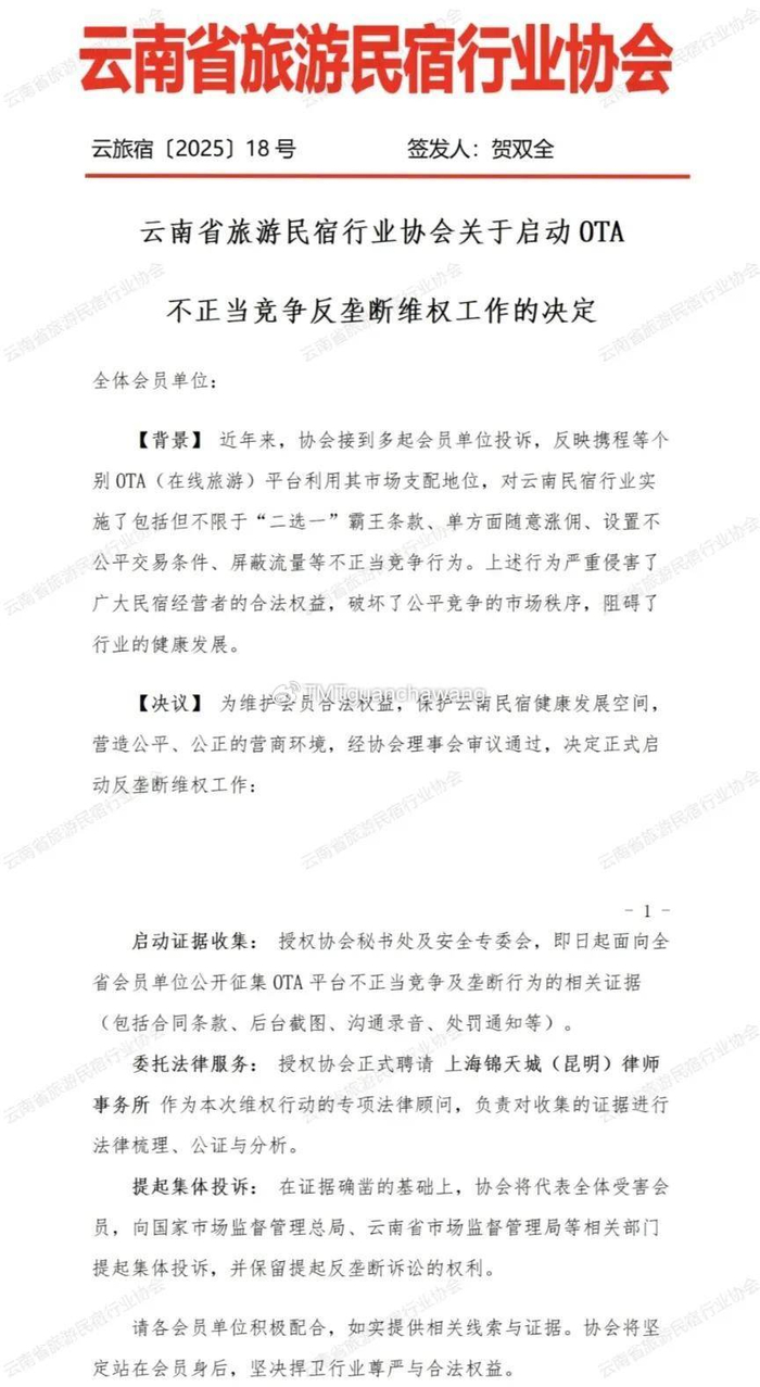 “我们不想再忍了。”云南省旅游民宿行业协会的声明,如同一记重拳,直击携程的要害。协会指控携程利用市场支配地位,实施了一系列不正当竞争行为:强制商户签订“二选一”的霸王条款,单方面提高佣金比例,甚至通过算法对不“听话”的商户进行流量屏蔽和降权。