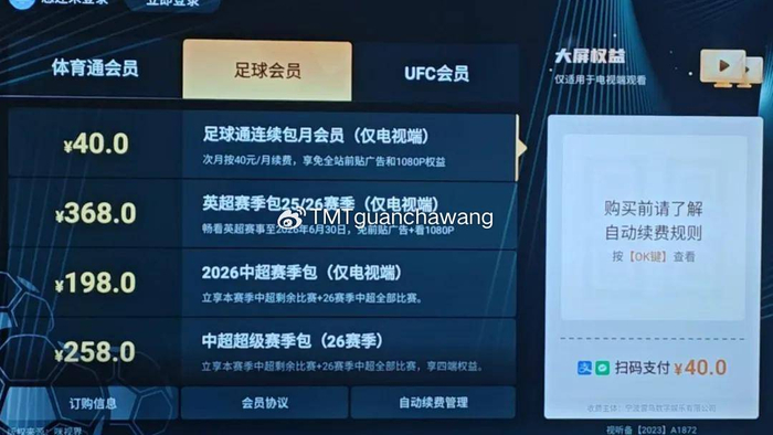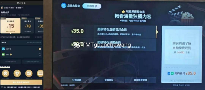 据新浪科技报道,咪咕视频在手机端开通的钻石会员服务,标注为“适用于手机/PAD/电脑端(不含电视端可投屏)”,而当用户想要在电视上观看咪咕视频的内容时,却要下载“咪视界”App,并另外付费开通会员服务。类似的,咪咕视频的足球会员服务、体育通会员服务、UFC会员服务等项目,在手机端和电视端上也被分开收费。若用户想在电视上也看到高清足球比赛,也需要在电视端“咪视界”App中另外付费开通会员才能观看。尽管一些用户表示,通过手机投屏方式可以在电视上实现观看,但视频画面却并非高清。这种手机端付费之后电视端要再付费的策略,被用户们认为是典型的“会员套娃”现象,严重损害了用户的消费体验。
