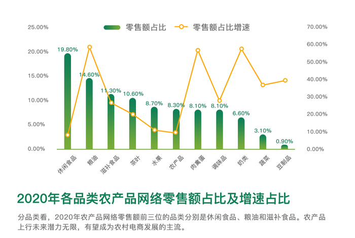 截止2020年农产品网络零售额达到4158.9亿元,同比增长26.2%,农村电商正成为拉动乡村经济发展的重要力量。就在11月26日,瞭望智库发布了《2021农村电商发展趋势报告》(下称“报告”)。《报告》认为,在坚持扩大内需、提振消费的新发展格局下,农村电商在此背景下也迎来了重大历史机遇。
