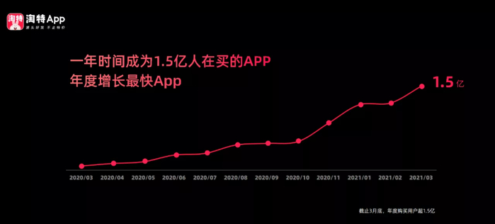 在过去这一年,淘特的成长速度很快。2020年12月,月度活跃用户首次破亿;2020全年,其年度活跃购买用户也超过1亿。