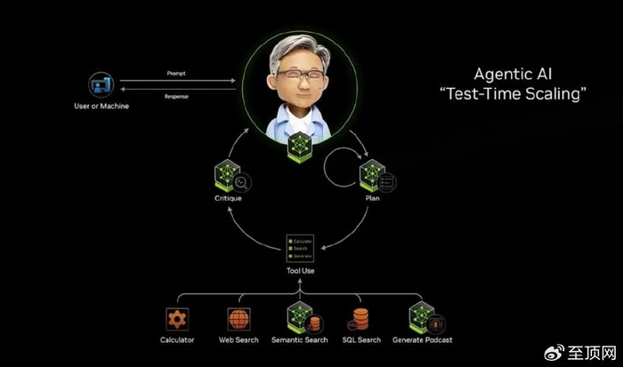 作为下一轮生成式AI的变革浪潮的代表,AI Agent使应用不再局限于简单的聊天机器人交互,而是能够通过精密的推理和规划解决复杂的多步骤问题,因此用于推理的计算量也在随着测试时扩展(Test-Time Scaling)而激增。为了帮助企业更好地构建AI Agent,英伟达采取不直接面向企业客户而是与IT领域软件开发者合作的市场策略,通过整合技术实现新能力,为企业提供一系列构建AI Agent的工具。