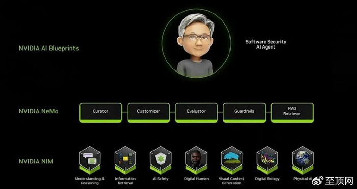 2025年1月英伟达与合作伙伴推出用于构建AI Agent应用的解决方案, 涵盖NVIDIA NIM (AI微服务涉及CUDA系列开发工具)、NVIDIA NeMo(端到端云原生框架,可以让用户不受位置限制,灵活地构建、定制和部署生成式 AI 模型,包含训练和推理框架、护栏工具包、数据管护工具和预训练模型)以及领先提供商的AI Agent框架,提高检索精度并减少智能体工作流的延迟,帮助企业构建和部署定制化AI Agent。