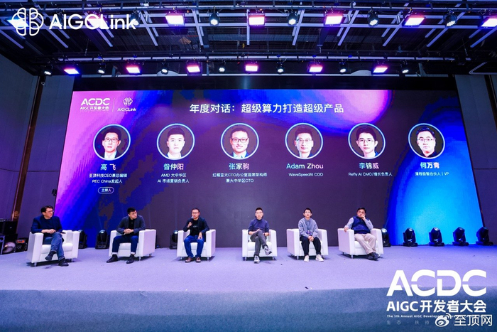 在第五届AIGC开发者大会上,展开了一场关于《超级算力打造超级产品》的年度对话,AMD大中华区AI市场营销负责人昝仲阳、红帽亚太CTO办公室首席架构师兼大中华区CTO张家驹、WaveSpeedAI COO Adam ZhouRefly.AI CMO/增长负责人李锦威、清程极智含伙人、VP何万青,与主持人PEC China发起人、至顶科技CEO兼总编辑高飞,围绕算力演进、技术栈协同以及AI产品规模化落地等关键议题展开深入探讨。
