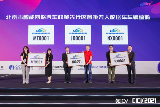 【环球网科技综合报道】无人配送车是自动驾驶技术在物流领域的重要应用,场景与技术已相对成熟,但产品始终处于管理空白区,取得上路合法身份困难重重。5月25日,第八届国际智能网联汽车技术年会上,北京市高级别自动驾驶示范区颁发了国内首批无人配送车车辆编码,京东物流成为首批获牌企业,车辆编码为JD0001,率先实现无人配送车“持证上岗”。