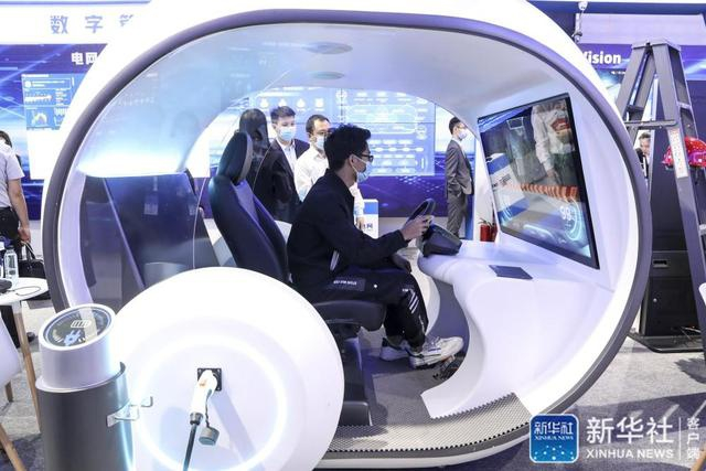 5月26日,参会者在数博会上通过虚拟汽车体验绿色出行。新华社记者欧东衢 摄
