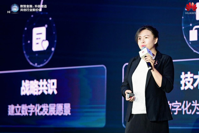 华为Cloud BU副总裁、全球Marketing与销售服务总裁石冀琳在主题演讲时指出,金融行业一直走在数字化转型的前沿,正走向数字金融多场景发展的阶段。