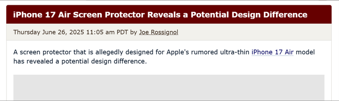 据传,今年发布的四款 iPhone 17 都将配备 2400 万像素前置摄像头,高于所有 iPhone 16 型号的 1200 万像素前置摄像头。仅凭这一变化可能无法解释 iPhone 17 Air 前置摄像头可能重新定位的原因,因为 iPhone 17、iPhone 17 Pro 和 iPhone 17 Pro Max 的屏幕保护膜在右侧仍然有一个前置摄像头孔。