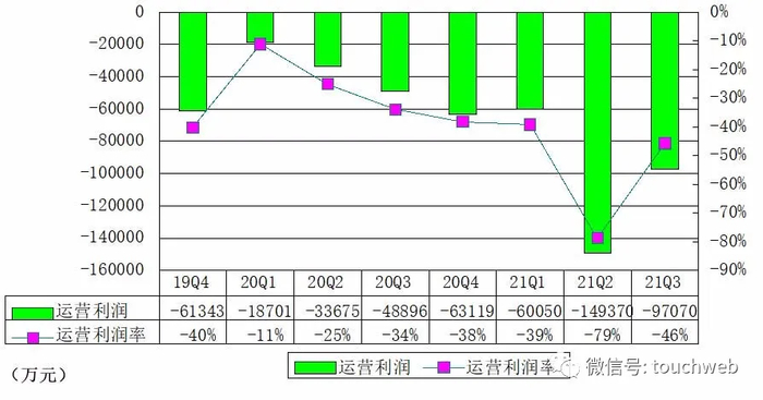 每日优鲜第三季度运营亏损为9.707亿元(约1.507亿美元),2020年同期运营亏损4.890亿元。