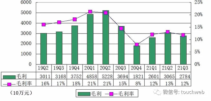 斗鱼2021年第三季度实现毛利润2.79亿元,对应毛利率为11.9%。