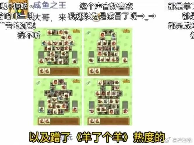 除了浮夸、离谱的风格,最让人叫绝的还是它“挂羊头卖狗肉”式广告。比如,“羊了个羊”版咸鱼之王。