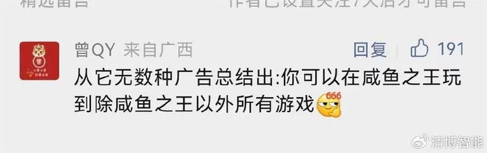 网友总结,你可以在咸鱼之王玩到除了咸鱼之王以外所有的游戏。