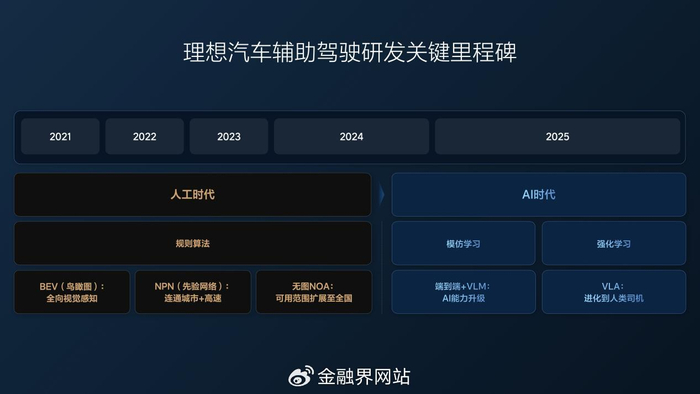 理想汽车的辅助驾驶演进历程,在某种程度上,是中国智能汽车产业技术攻坚与认知深化的一面镜子,也深刻揭示了VLA的里程碑式意义。理想汽车辅助驾驶早期应用的BEV鸟瞰图、NPN先验网络、无图方案均属于“人工时代”的产物,依赖工程师编写的海量规则,其天花板是无法穷尽的极端场景。随后到来的“端到端+VLM”架构让理想汽车辅助驾驶迈入了“AI时代”,本质是通过模仿人类驾驶数据来学习,但理想汽车董事长兼CEO李想认为端到端方案仍是“猴子开车”——能模仿行为,却不理解物理世界背后的逻辑。