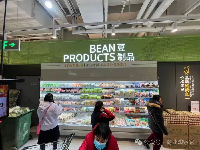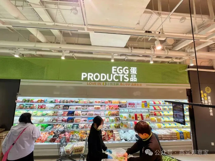 不过,作为新玩家的新开店来讲,小优生鲜首店3700平米的营业面积,相对比较大,当下,一些新玩家的新开店的面积体量,很多都在2000多平米左右了。2000多平米的店型面积现在被很多市场人士认为,既可以规模做3R(即热、即食、即烹)品类,同时还可以实现更高的效率化水平,包括坪效、人效,及成本控制。