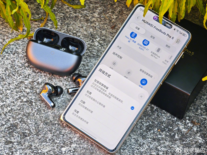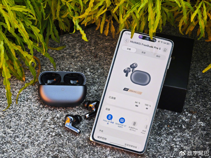 耳机实现了 4.6Mbps 的高速传输,支持 96kHz/24bit 母带级无损音源,在高音质的输出下,用户可以在华为 Freebuds Pro 5 听到更原汁原味的声音。这对于音乐发烧友而言,可以一下子听出更多细节。