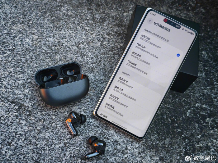 耳机本体则是华为高端音频设备华为悦彰的 logo。