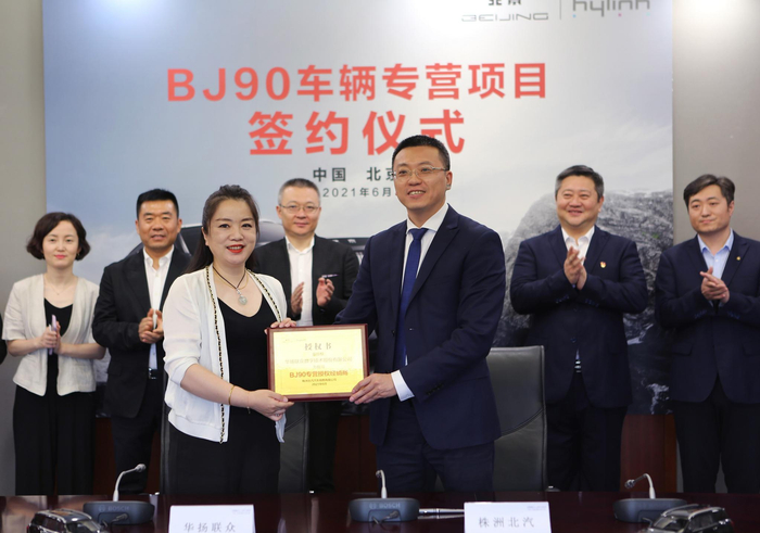 2021年6月9日,华扬联众数字技术股份有限公司与株洲北汽汽车销售有限公司在北京蓝谷举办合作授权仪式,授权华扬联众享有北京汽车BJ90车型的批发及零售专营权。北京汽车蓝谷营销服务有限公司董事长刘诗津,北京汽车蓝谷营销服务有限公司常务副总经理刘洋,华扬联众创始人、董事长苏同,华扬联众副总裁、全国媒介购买中心总经理贾建萍等,出席签约仪式。