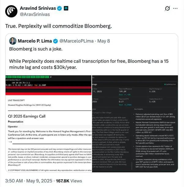 Zain Kahn:我想再追问一个相关问题。我看到你发过一些关于 Bloomberg 的推文,说你想构建一个能对标 Bloomberg 的产品。你团队里其他人也谈过这个方向。但我自己不在金融行业,也不是 Bloomberg 终端的用户。你能讲讲你看到的这个机会和问题吗?