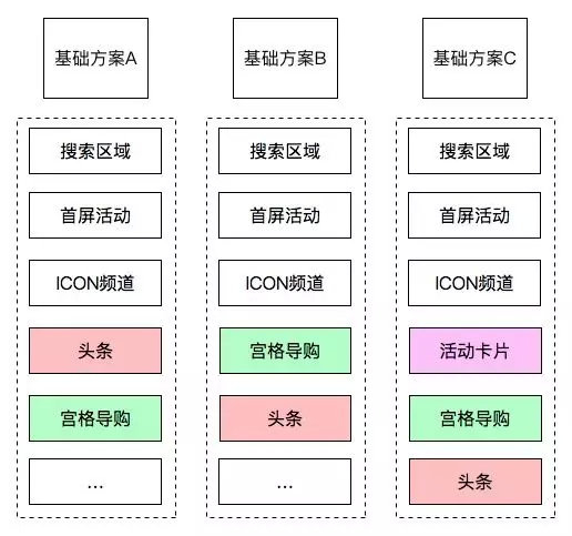 这里面有两个关键字“多版本”和“隔离”,其中“多版本”是基于业务诉求的考量和抽象,面向用户的基本实体就是页面,这些页面主要由页面布局、货品供给、素材渲染几个因素构成,而针对不同目标群体需要有所差异化的透出,所以就需要在页面级别、模块级别和坑位级别针对不同人群、地域进行多版本的搭建运营。