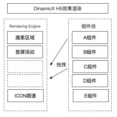 所以我们使用动态 schema 的方式定制化组件协议,由业务按需设计,既保证了协议标准又可以支持业务差异化;另一个要素是可视化能力,我们借助 DinamcX 的动态 H5 渲染效果完成可视化的能力建设。