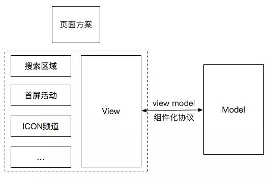 首页的组件渲染是典型的 MVVM 的模式,端侧 ( View ) 和服务数据 ( Model ) 通过组件化协议 ( ViewModel ) 进行双向通信,一方面通过抽象组件协议解耦两端的耦合性问题,另一方面通过实例化组件实体完成了页面间的复用问题。