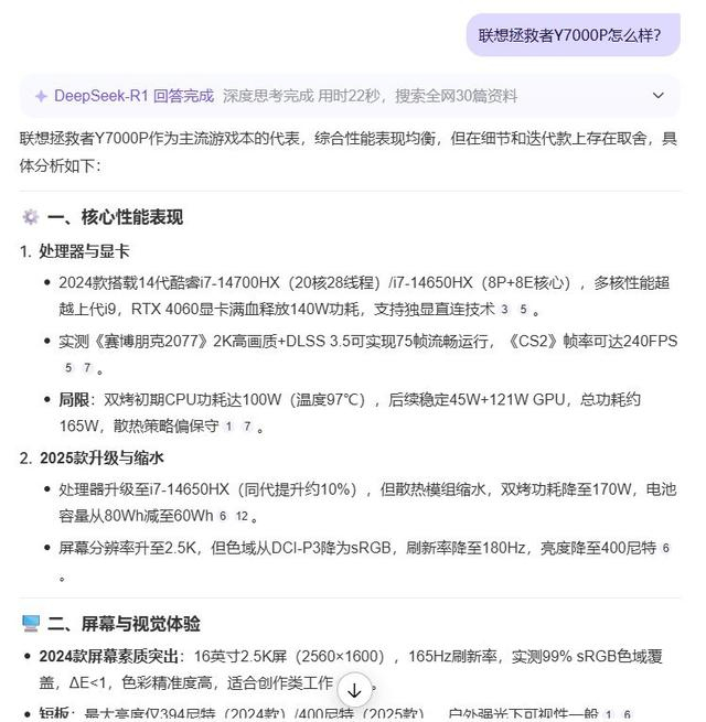 与传统SEO不同,AI-CRO从被动搜索转变为主动搜索。它直接面向AI生成式回答场景,优化对象不再是网页(URL),而是内容片段,包括文本、数据、观点、解决方案等。其排名逻辑基于内容质量、可信度、相关性、意图匹配、权威性等因素。例如,当用户询问“联想拯救者Y7000P怎么样?”时,经过AI-CRO优化的结果,用户无需对搜索结果再做二次筛选,所呈现的结果基本就是用户想要的最终结果,直接生成答案摘要或推荐内容,实现了“所见即所得”。