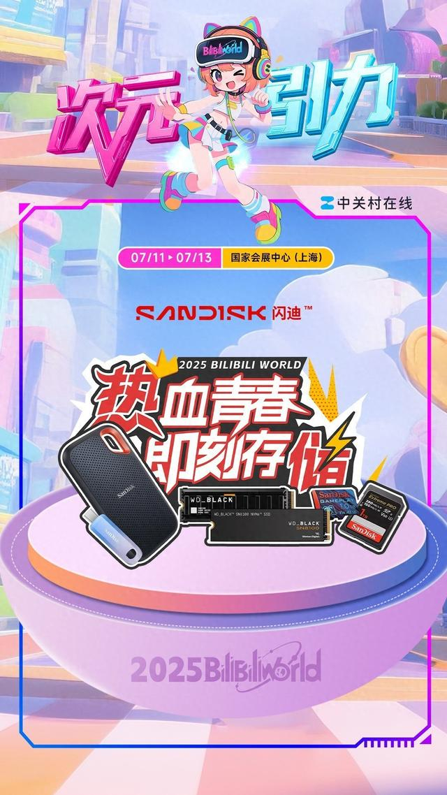 【ZOL中关村在线原创新闻】”热血青春,即刻存储”,一年一度的BiliBiliWorld线下嘉年华活动将在7月11日-13日于上海国家会展中心盛大开启。知名存储品牌Sandisk闪迪将携众多热门产品空降中关村在线展台,届时不仅会有好看的舞台走秀,更有好玩的舞台互动等你来参加~