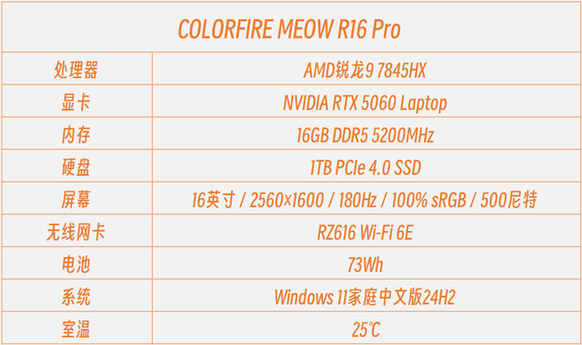 【ZOL中关村在线原创评测】设计上有亮点的笔记本,往往会有一定程度的溢价,当然也有例外。COLORFIRE旗下的MEOW系列就有着笔记本市场中少有的萌宠设计风格,圆圆胖胖、可可爱爱的橘宝IP深受年轻人喜爱。最新的COLORFIRE MEOW R16 Pro游戏本延续了年轻个性的设计风格,而且拥有锐龙9 HX+RTX 50系的硬件组合,甚至在价格上也非常亲民。此次我们拿到了搭载RTX 5060 Laptop的COLORFIRE MEOW R16 Pro,首发6599元,部分地区可享受国家补贴,到手价低至5279.2元。下面我们看一下这款设计有亮点的游戏本,在性能、游戏等方面是否也有亮点。