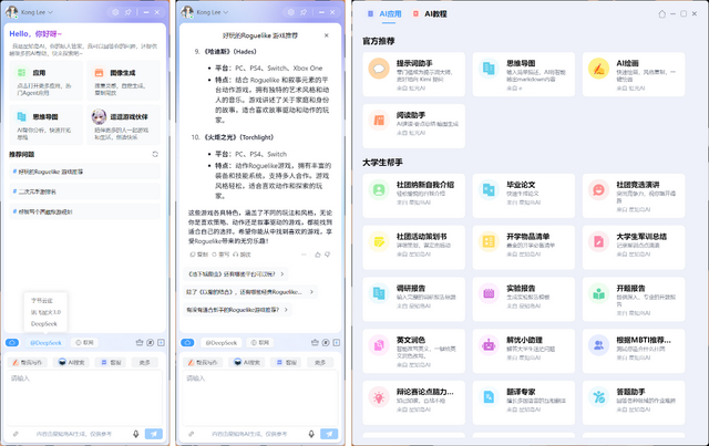 星知岛最好用的一点就要数集成云端大语言模型,包括DeepSeek、讯飞星火3.0、字节云雀等,同时支持联网搜索功能。实测响应速度极快,而且几乎很难遇到“服务器繁忙,请稍后再试”的情况。此外还有鼠标一键划词功能、免费AI教程专区及图像生成等功能,最新升级的“AI阅读助手”,还可以快速阅读总结各类PDF文档。