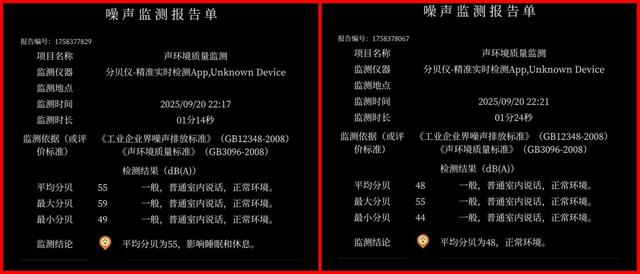 该项测试主要是利用《赛博朋克2077》自带Benchmark进行循环测试,过程中使用噪音测试仪对最大、最小以及平均噪音分贝数进行记录,并以噪声监测报告单形式呈现,具体如下: