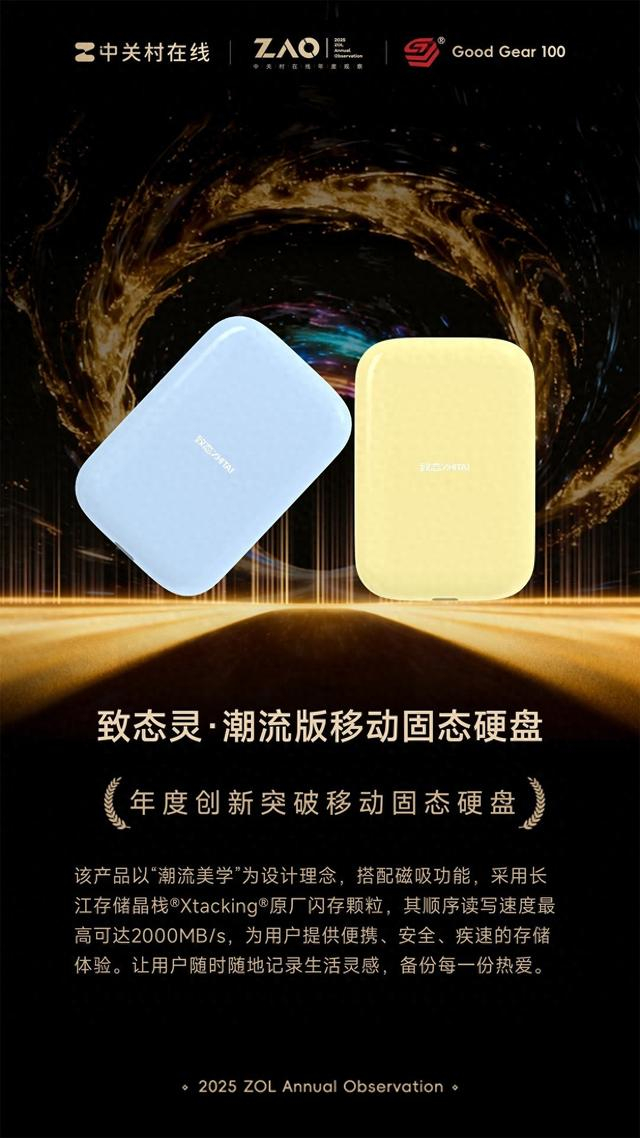 2025年度百大优秀科技产品:年度创新突破移动固态硬盘:致态灵·潮流版移动固态硬盘