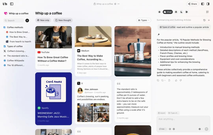 YouMind一开始就是一个收藏夹,用浏览器插件把你看到的视频文章一键收藏到YouMind,到了最新的0.3版本上新了Agent功能。