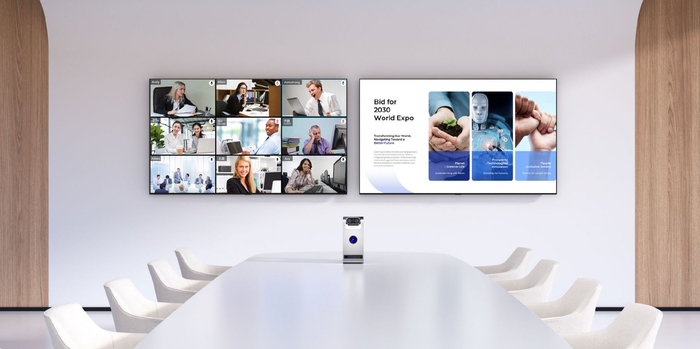 据介绍,其自研的“成者临静™”AI拾音系统可实现8-10米清晰收音;AI摄像头具备发言人追踪、手势识别与白板内容自动捕捉等智能功能;而全球独创的“隔空书写”技术,更让用户能够用专用笔在任意投影画面上直接批注。