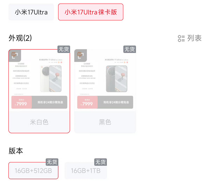 要知道这次小米17 Ultra除了标准版,还推出了一个徕卡版,而徕卡版比标准版要贵500元,但消费者似乎更青睐于购买徕卡版。
