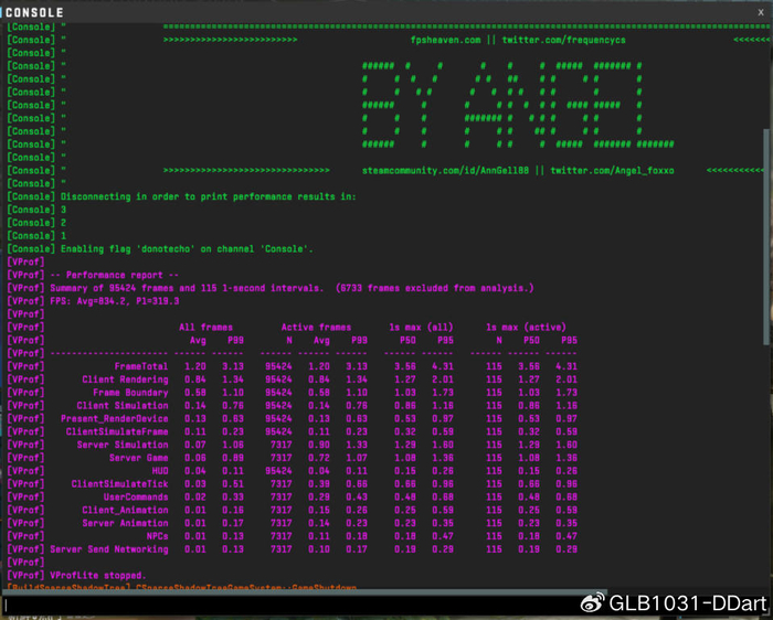 「CS 2」游戏1080P分辨率,低画质下游戏平均帧数834.2FPS,最小帧319.3 FPS。