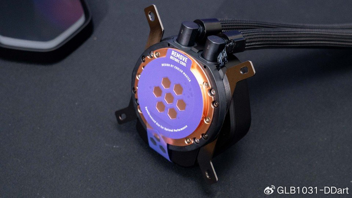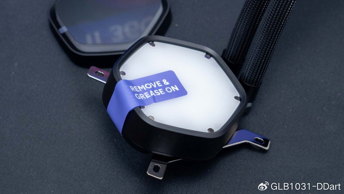 翻转带底部之后会发现,这个贴纸预留出点涂导热硅脂的区域,可以在涂抹硅脂时把硅脂涂抹成酷冷至尊标志性的六边形元素,而且可以保证硅脂涂抹不过量。