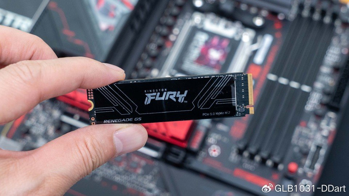 拿出可以看到金士顿FURY PCIe 5.0 为标准2280规格设计,正面可以看到FURY Renegade G5 贴纸。